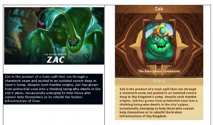 In the lawsuit, discovered by Polygon and found in full by MMOBomb, Riot laid out side-by-side comparisons of elements from LoL with those in I Am Hero, including several very similar character names (like Heimerdinger/Dinger, Talon/Tolan, Vi/Vy, Viktor/Victor, Teemo/Tomee, and ore), but the real kicker is in the lore descriptions of various characters, which are directly copied and pasted from League, with minor alterations.